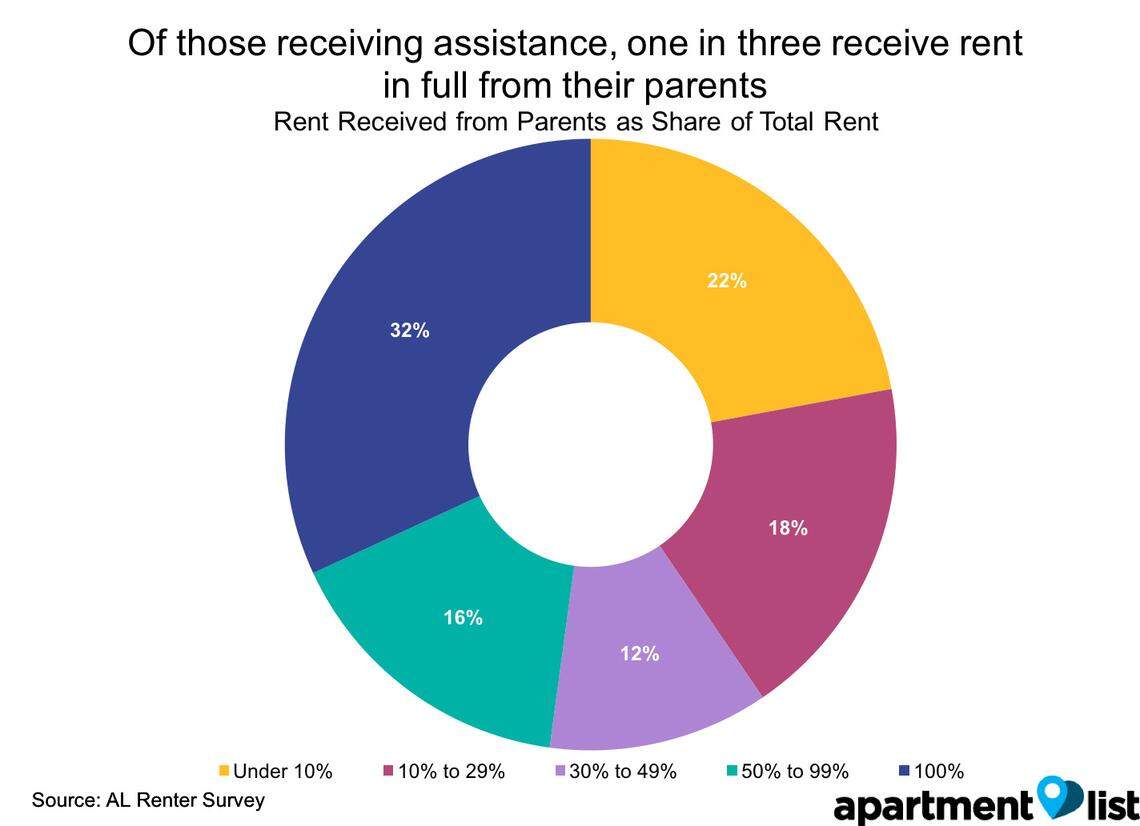 - Of those getting rent money from the folks, about a third are getting enough to pay their entire monthly bill. The rest receive only partial payments from their parents.