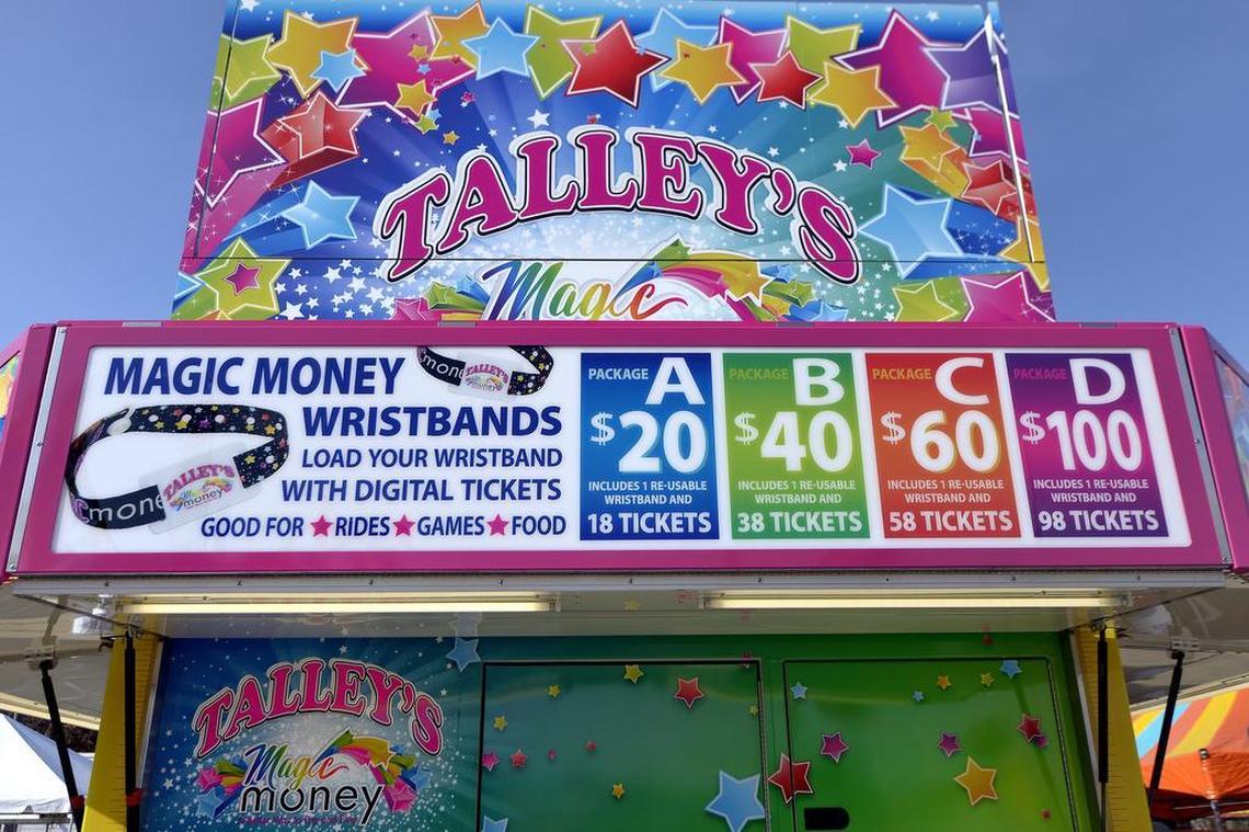 Midway goers purchase a wristband and load it with tickets. Each ticket is a dollar and there is a one-time fee of $2 for the initial band purchase. The wristband can be reloaded at the midway’s ticket booths (which will be accepting credit and debit cards for the first time this year) or by visiting the Magic Money app.
