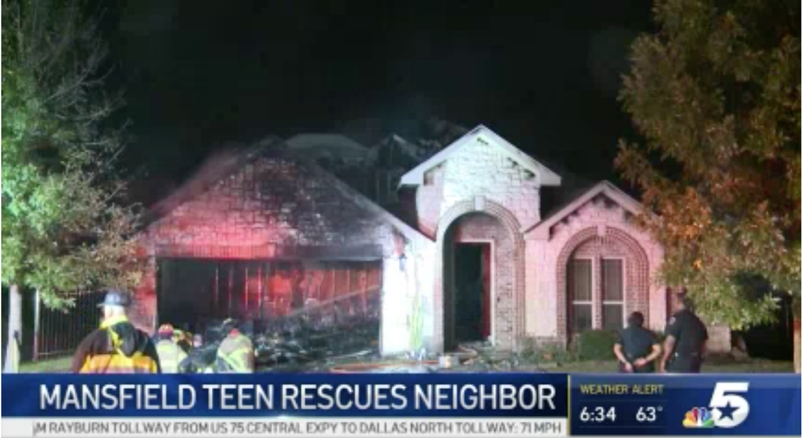 Gabriel Vivoni, 17, he had just gotten home from swim practice when he noticed something odd in his Mansfield neighbor’s garage — flames, KXAS reported. Vivoni says he knocked on the door to no avail, then ran home to call 911 before returning to his neighbor’s house.