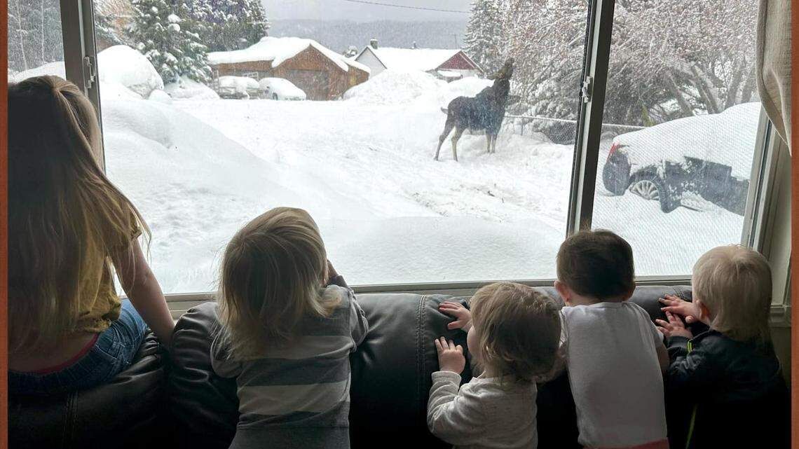 Then last week, she noticed them right outside and corralled the kiddos to the couch beneath the window before the moose could scurry off again.