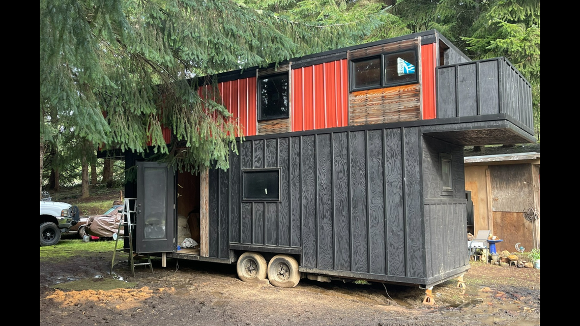 The tiny house is a 1979 Corsair Trailer Coach travel trailer that has been converted into a two-story living space, according to the sheriff’s office.