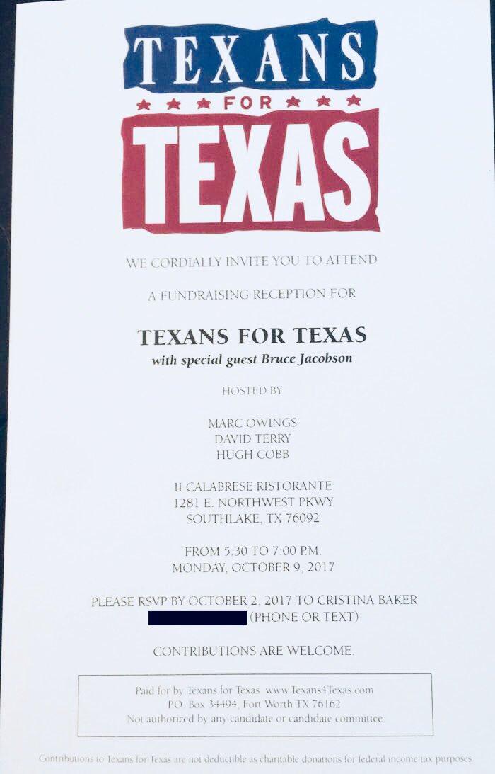 Jacobson was the guest for a Monday Southlake fundraiser by a Fort Worth-based super PAC, Texans For Texas. The PAC has reported $25,000 raised and $7,500 spent, including $5,000 to a Pittsburgh consulting firm that also worked for presidential candidate Rick Santorum.