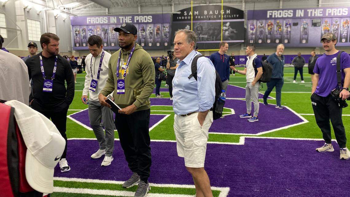 Belichick seemed to have his attention focused squarely on Max Duggan. The 2022 Heisman Trophy runner-up only threw at the pro day and was sharp as he went through an orchestrated set of route concepts led by renowned quarterback trainer Jordan Palmer, the younger brother of Carson Palmer.