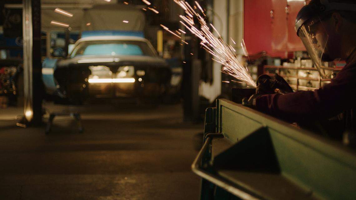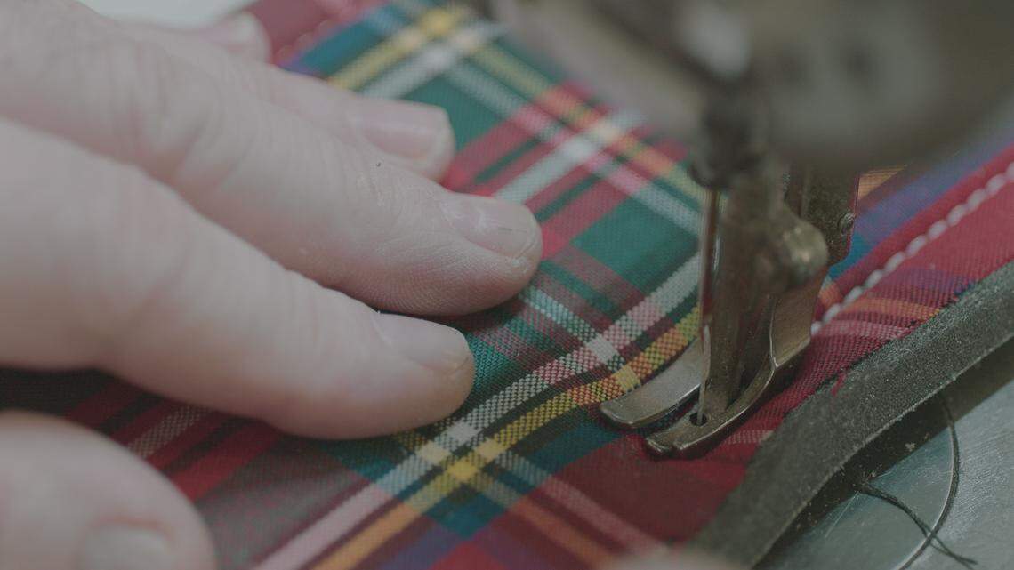 The car is described as a “restomod” that mixes vintage body with modern comfort, performance and reliability. It’s painted Glacier Blue, a nod to Schwab’s colors, and features Colonial’s trademark Scottish royal tartan on the seats, a nod to the plaid jacket.