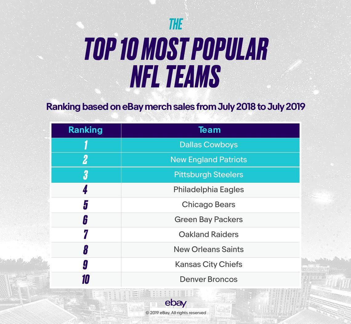 The Cowboys are also No. 1 in eBay merchandise sales. They averaged 26 items sold per hour over the past year.